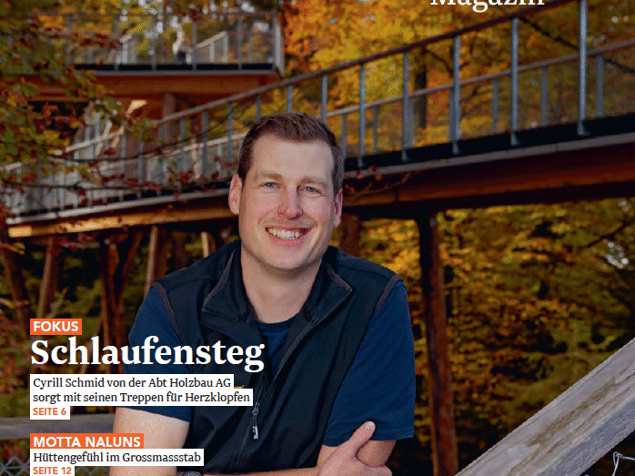 In der aktuellen Ausgabe des Fachmagazins von holzbau schweiz wir ausführlich über den von uns erstellen Schlaufensteg berichtet.