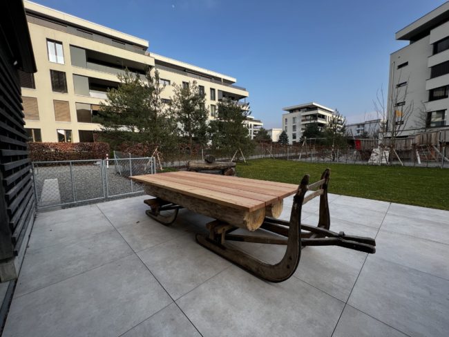 Auf Kundenwunsch durften wir einen alten Holzerschlitten zu einem Gartentisch umbauen. Holzerschlitten wurden früher benutzt um das geschlagene Holz zu transportieren. Schön, dass er heute eine neue Verwendung findet.