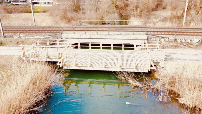 Brückenkonstruktion auf Stahlträger aus Schweizer Eiche in Zusammenarbeit mit Gebr. Hodel AG. Bauherrschaft: Kanton Zug