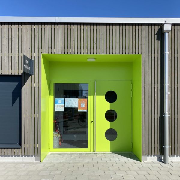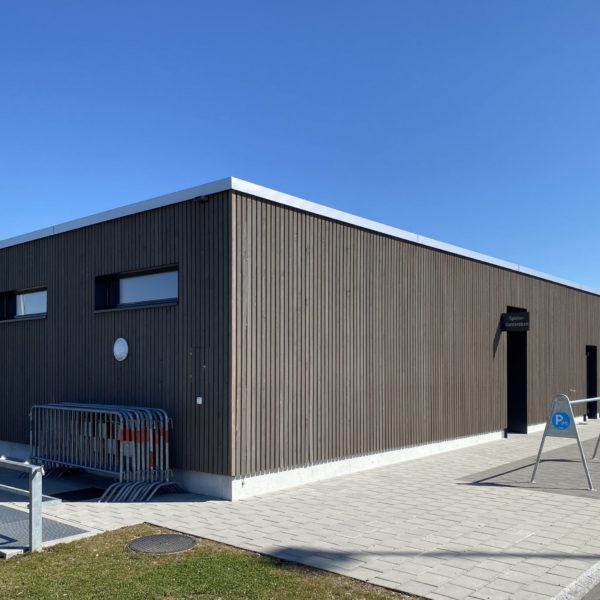 Lattenfassade Fichte, vorvergraut auf grüner Fassadenfolie