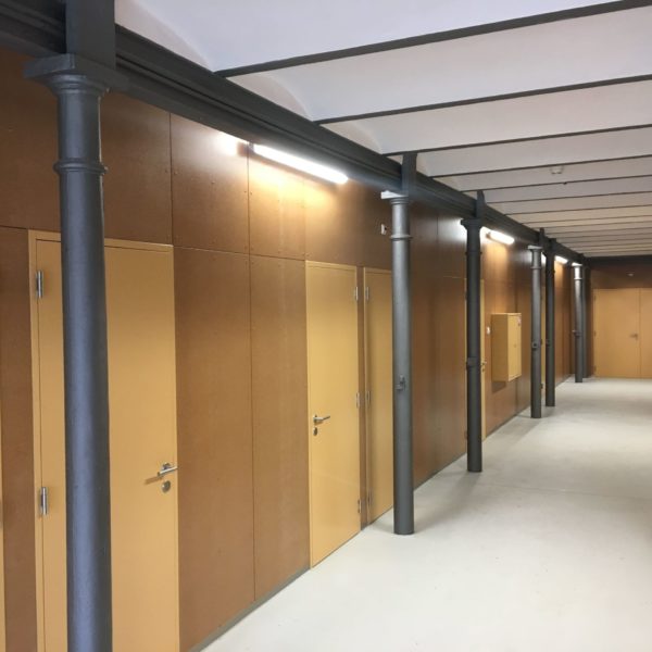 Wandbekleidung mit Brandschutzanforderung aus Cemcolor, lackiert