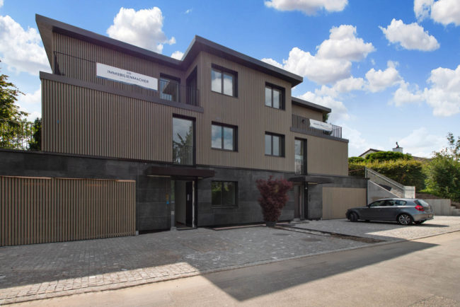 Lattenfassade Fichte, vorvergraut, inkl. Dämmung auf Mauerwerk Architekt: Peter Möhl & Partner AG Bauherr: Die Immobilienmacher AG