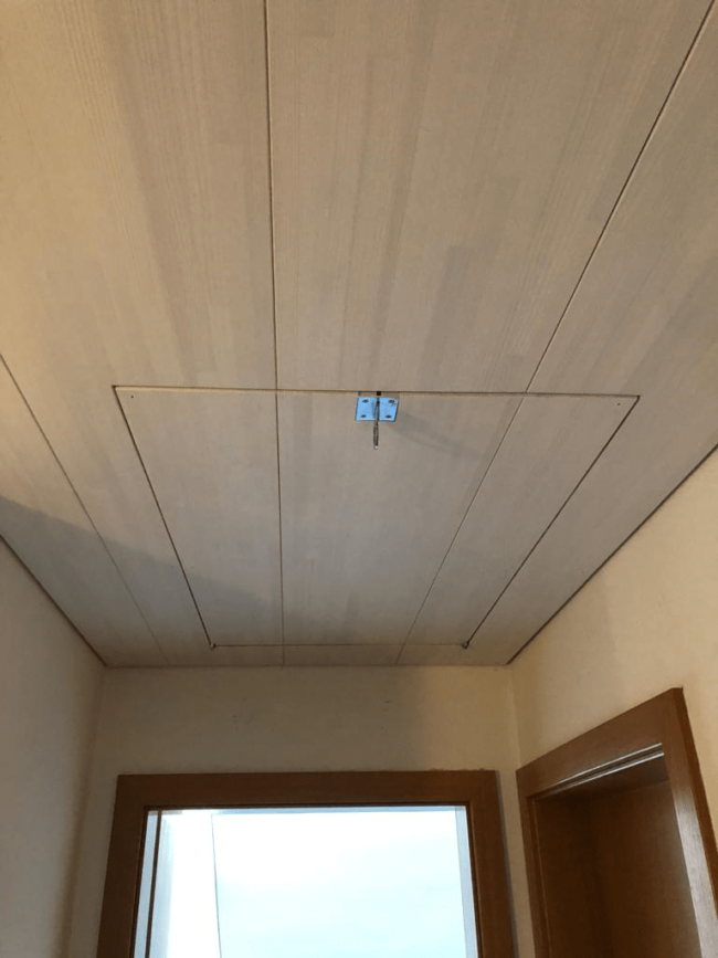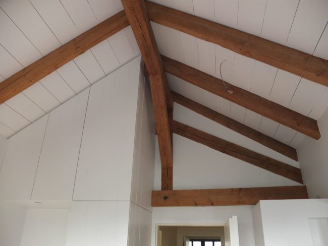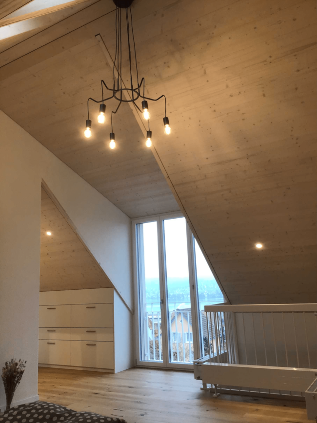 Deckentäfer aus 3-Schichtpanelen Weisstanne, lasiert Architekt: Abt Holzbau AG Bauherr: E. Hofstetter