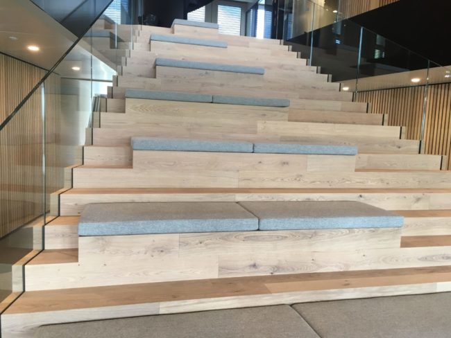 Treppe in Eiche als Auditorium mit Besprechungsnischen Architekt: Axess Architekten AG & A. Müller AG Bauherr: Astra Zeneca