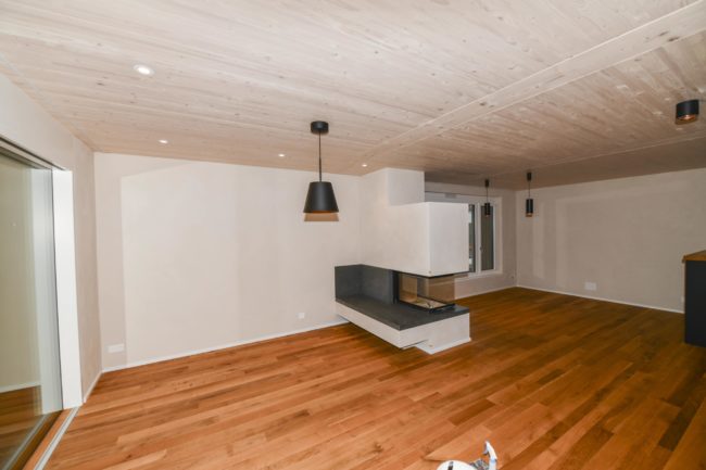 Riemenboden Fichte/Tanne, Deckentäfer aus 3-Schichtpanelen Architekt: Abt Holzbau AG Bauherr: J. Leuthard