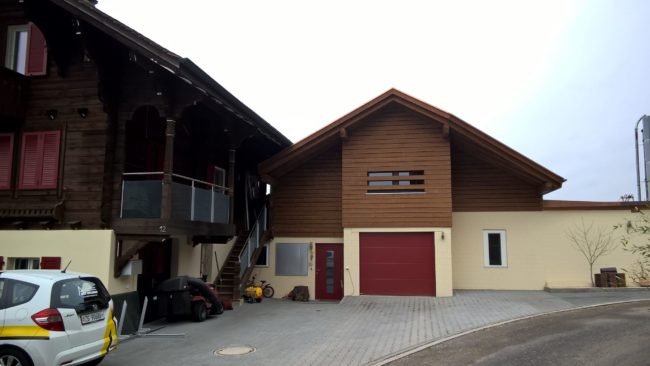 Aufstockung Nebengebäude in Systembauweise Architekt: Abt Holzbau AG Bauherr: A. & J. Leuthard