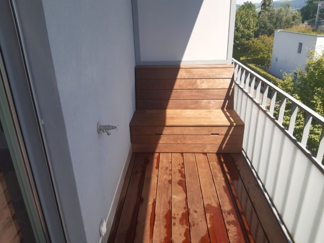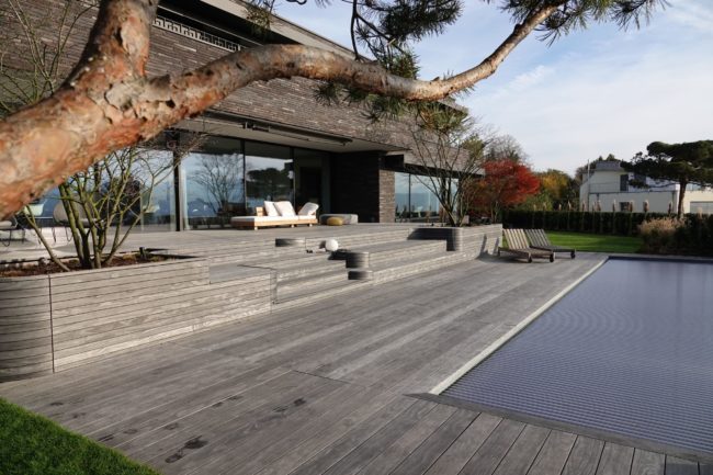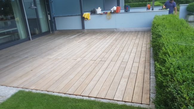 Terrassendeck aus KEBONY clear, sichtbar geschraubt.
