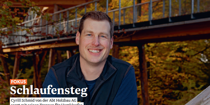 In der aktuellen Ausgabe des Fachmagazins von holzbau schweiz wir ausführlich über den von uns erstellen Schlaufensteg berichtet